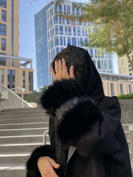 التفاصيل : القماش جوخ + جلد + فرو القصه نص كلوش
